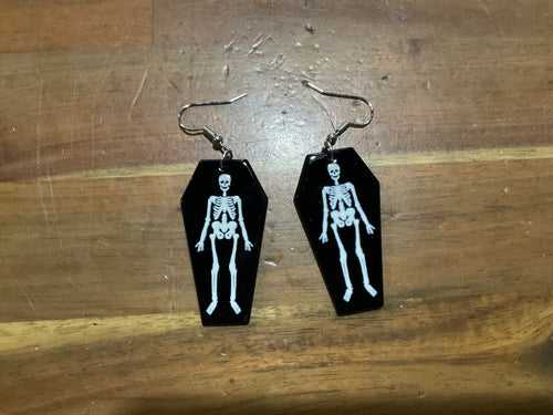 Coffin with Skeleton Earrings Horror Goth